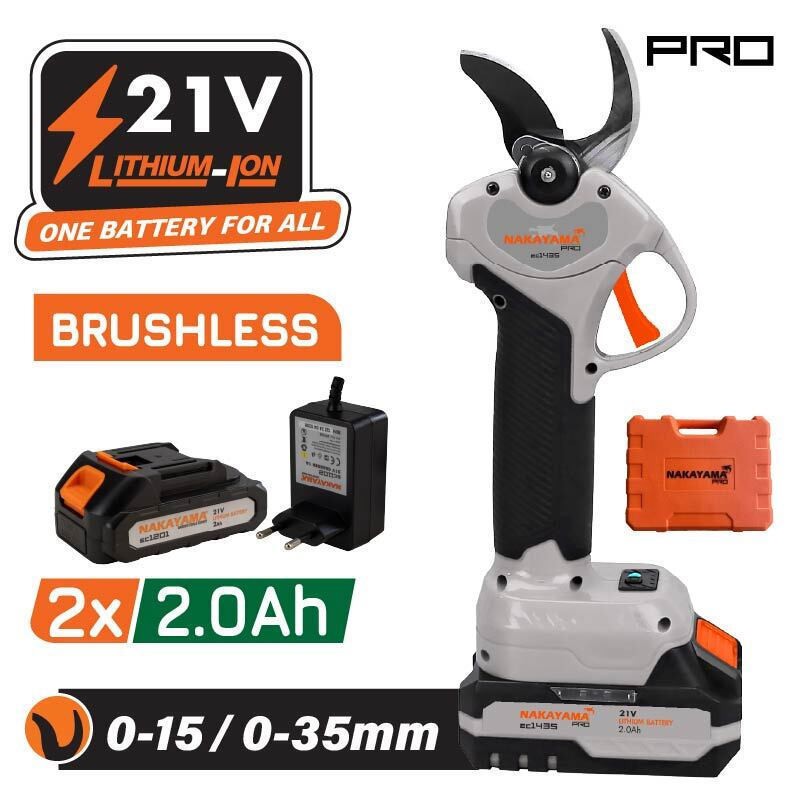 Nakayama EC1435 Ψαλίδι Κλαδέματος Μπαταρίας Brushless 21V 2x2Ah/2Ah με Μέγιστη Διάμετρο Κοπής 35mm