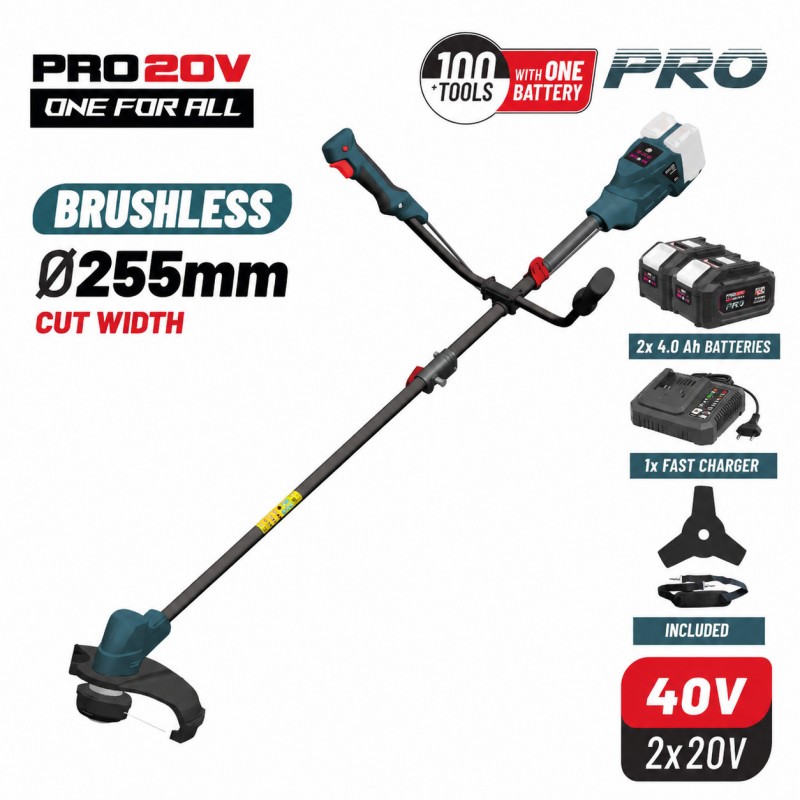 BORMANN Pro BBP4602 Θαμνοκοπτικό 40V Brushless Μπαταρίας Με 2 Μπαταρίες 4.0 Ah και Φορτιστή